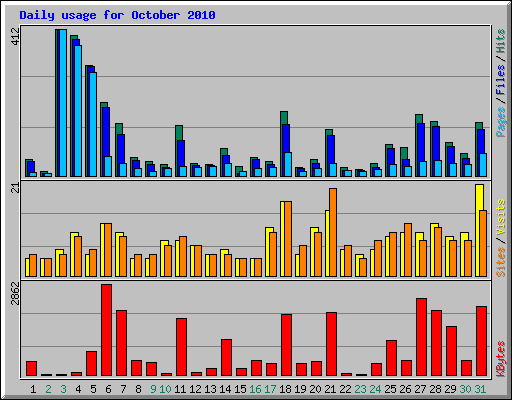 | Day | Hits | Files | Pages | Visits | Sites | KBytes | ||||||